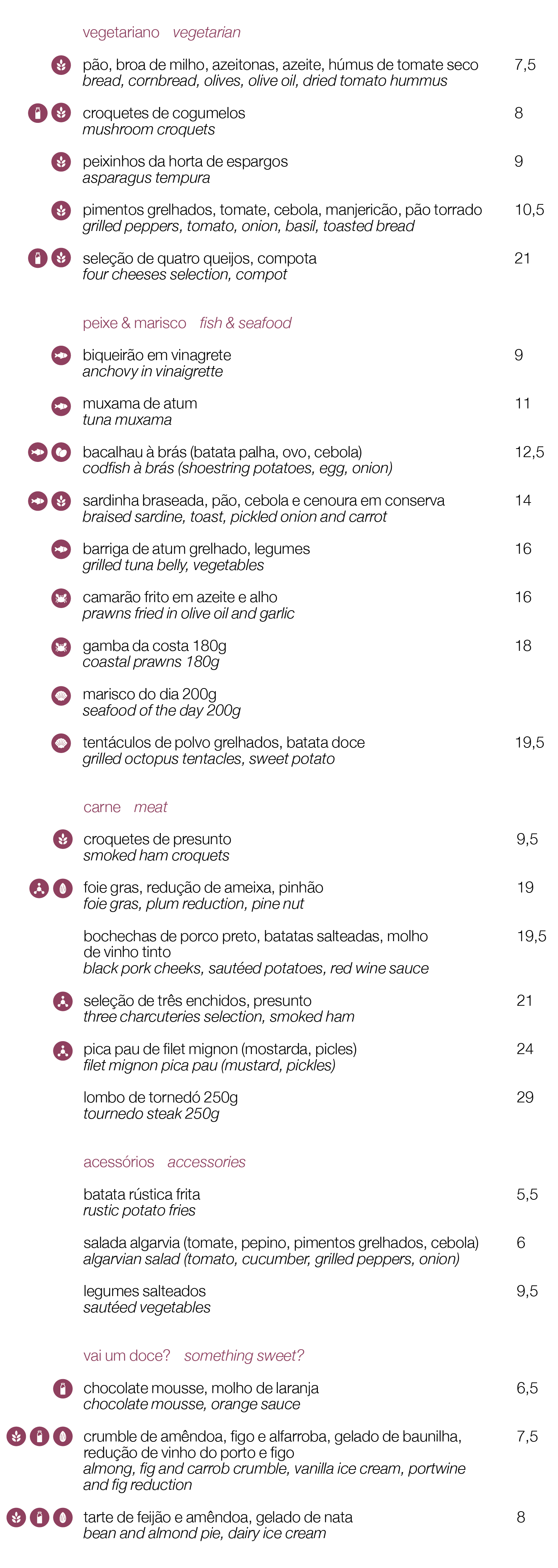 Bem-vindo/a ao nosso wine bar & restaurante, onde o convidamos a viajar por Portugal, um copo de cada vez. A nossa seleção em constante mudança de vinhos portugueses exclusivos, quase todos disponíveis a copo, oferece a oportunidade de explorar as ricas e diversas regiões do país – desde o Minho costal, ao ensolarado Algarve, e as nossas ilhas no Antlântico. Aqui, não há lista de vinhos – confie na nossa equipa experiente para o orientar ou sinta-se à vontade para escolher a sua própria aventura. Complemente o seu vinho com os nossos pequenos pratos cuidadosamente elaborados, pensados para partilhar. Quer seja um amante experiente do vinho ou um novato curioso, há sempre algo novo para descobrir.